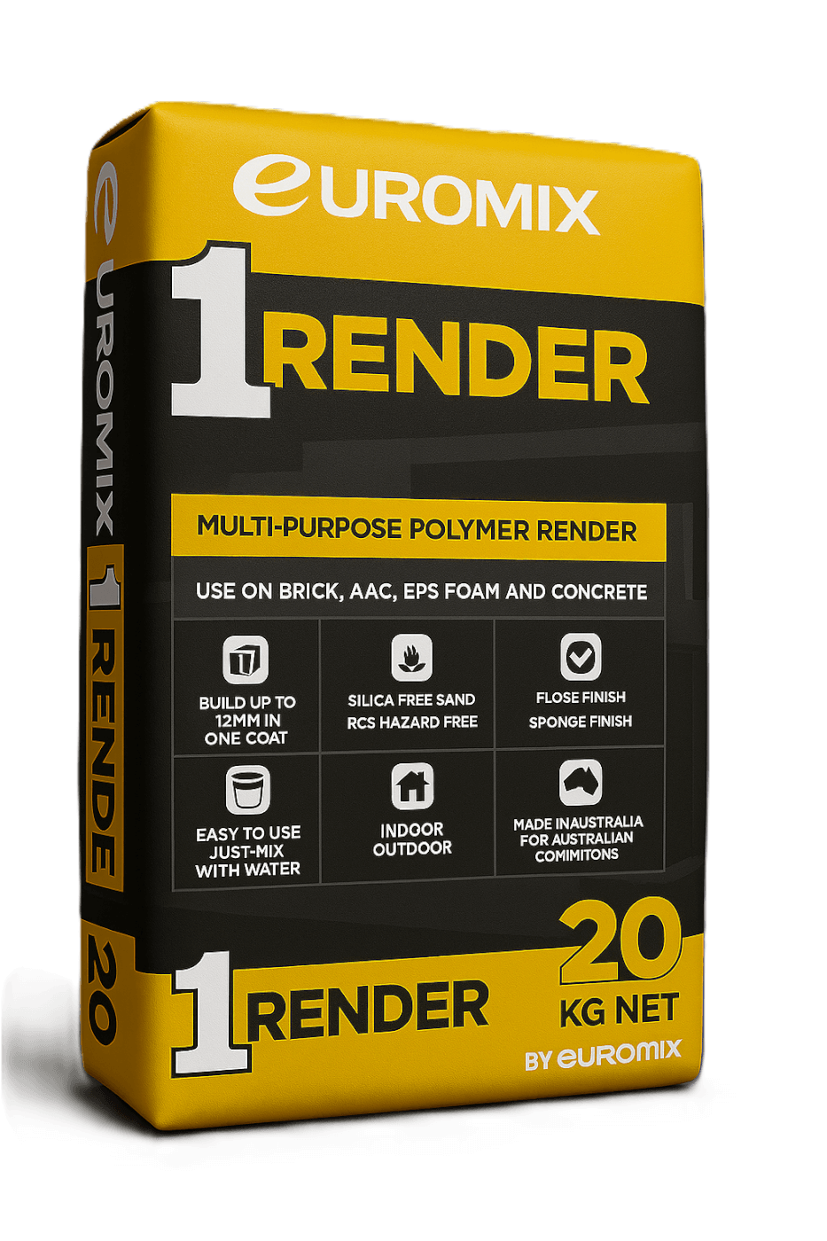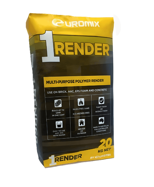 Euromix 1Render is a versatile pre-blended, acrylic render designed for efficiency on your job. In most cases you can finish with just 1 coat. Ideal for either a Float or Sponge finish, ready for texture or paint.